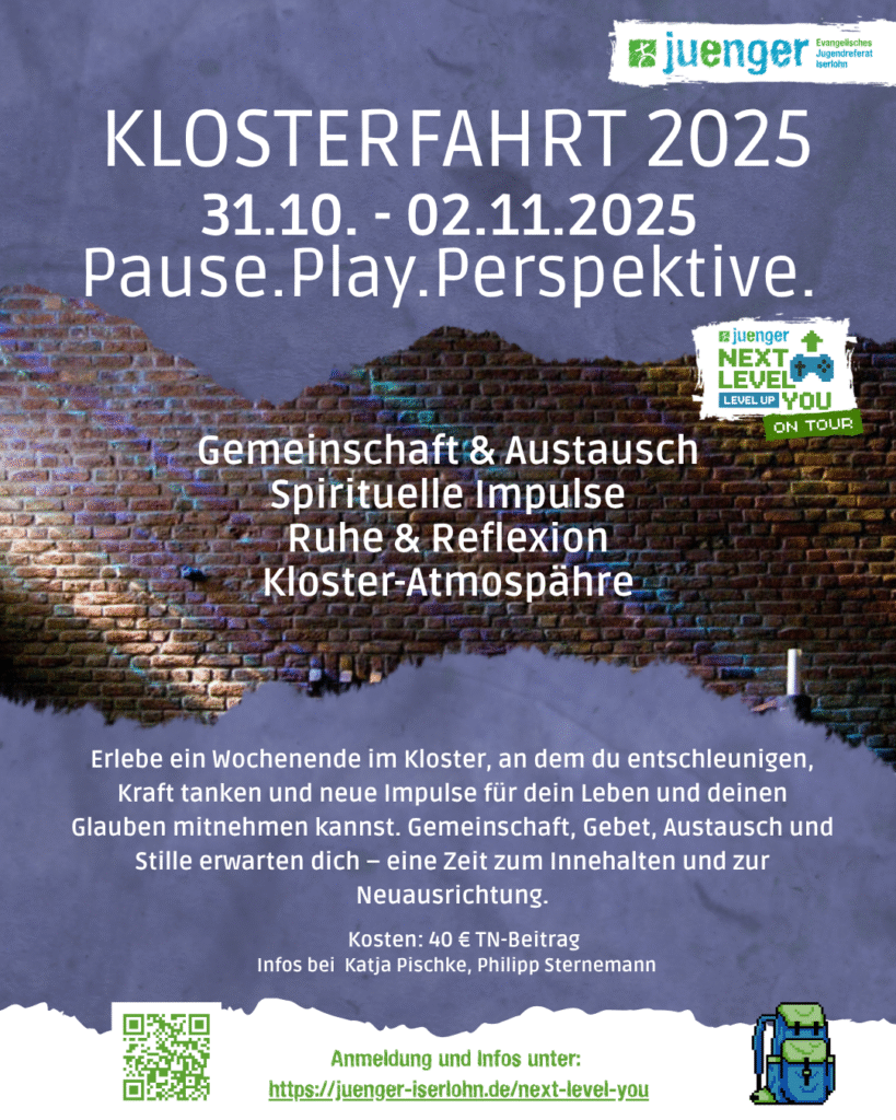 31.10.–02.11.2025 – Pause. Play. Perspektive (Klosterfahrt) (40€ pro Person)